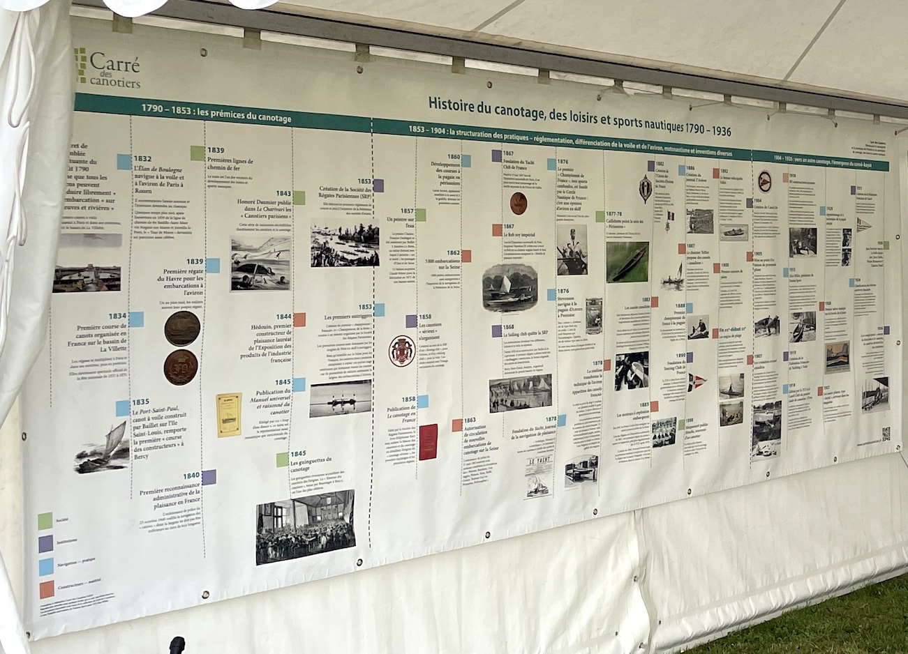 Le premier a été l’édition d’une Histoire du canotage, des loisirs et sports nautiques 1790-1936 sous forme d’une frise chronologique de grand format.